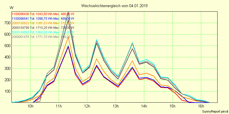 Wechselrichter-Vergleich Anlage 1 - Zedersdorf vom 04.01.2019