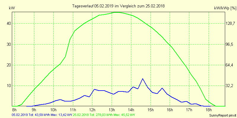 Wechselrichter-Vergleich Anlage 1 - Zedersdorf vom 05.02.2019