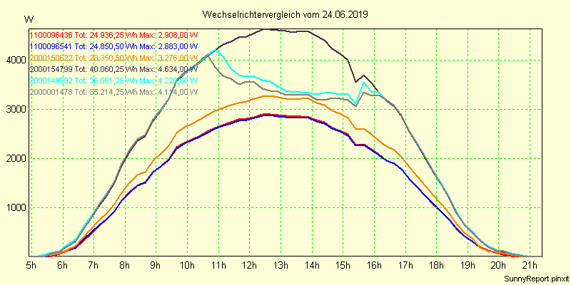 Wechselrichter-Vergleich Anlage 1 - Zedersdorf vom 24.06.2019