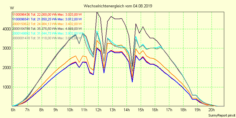 Wechselrichter-Vergleich Anlage 1 - Zedersdorf vom 04.08.2019