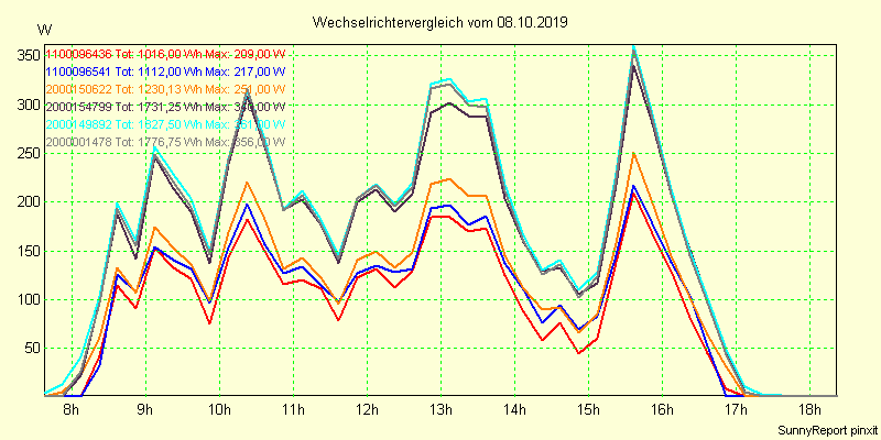 Wechselrichter-Vergleich Anlage 1 - Zedersdorf vom 08.10.2019