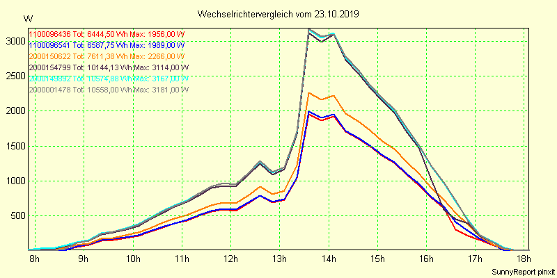 Wechselrichter-Vergleich Anlage 1 - Zedersdorf vom 23.10.2019