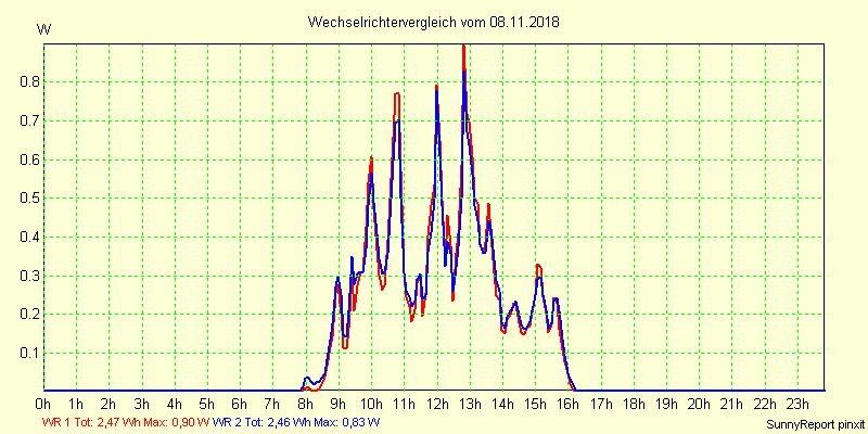 Wechselrichter-Vergleich Anlage 16 - Sonnefeld, Eichenweg 25 /2 vom 08.11.2018